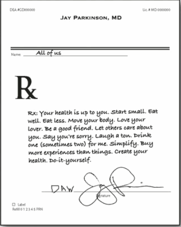 Most doctors prescribe pills, I prescribe empowerment. We spend less than an hour per year with our doctor—and 8,765 without. Fortunately, we live in the age of DIY. And now we have the tools to create a new health experience. Dr. Google is always there for us. We can connect with the 500 people in the country all living with the same rare illness. We can email our doctor or meet them by video chat. We can find the nearest farmer’s market with our iPhone. We can use the web to find fellow runners in our neighborhood. Living healthy is getting easier every day.
